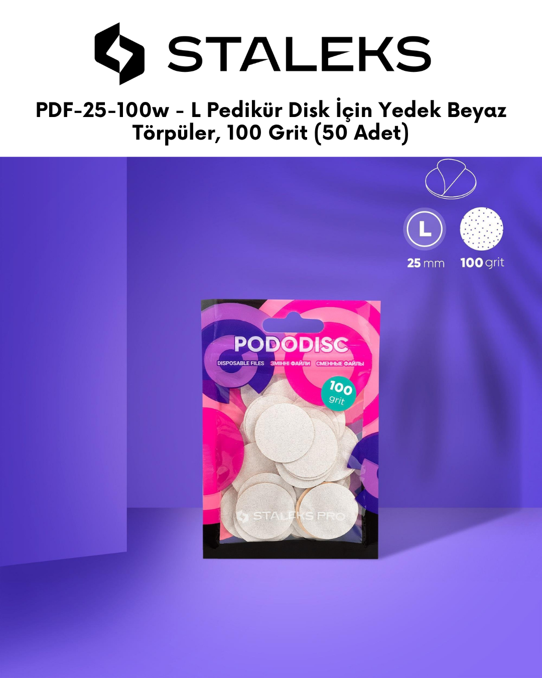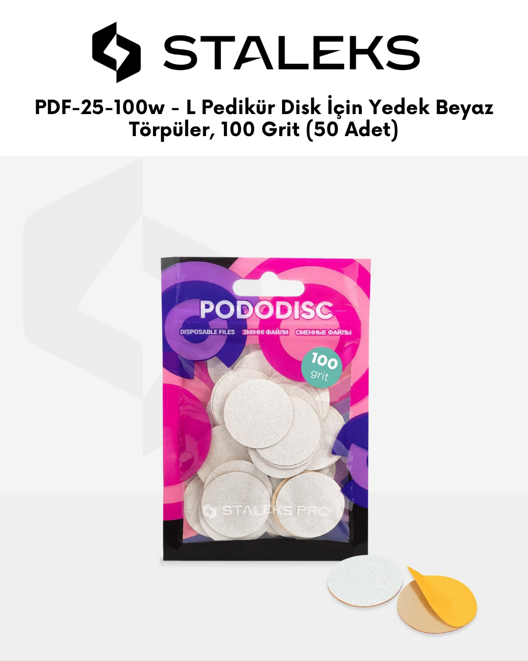 PODODISC STALEKS PRO L Pedikür Disk İçin Yedek Beyaz Törpüler, 100 Grit (50 Adet)
