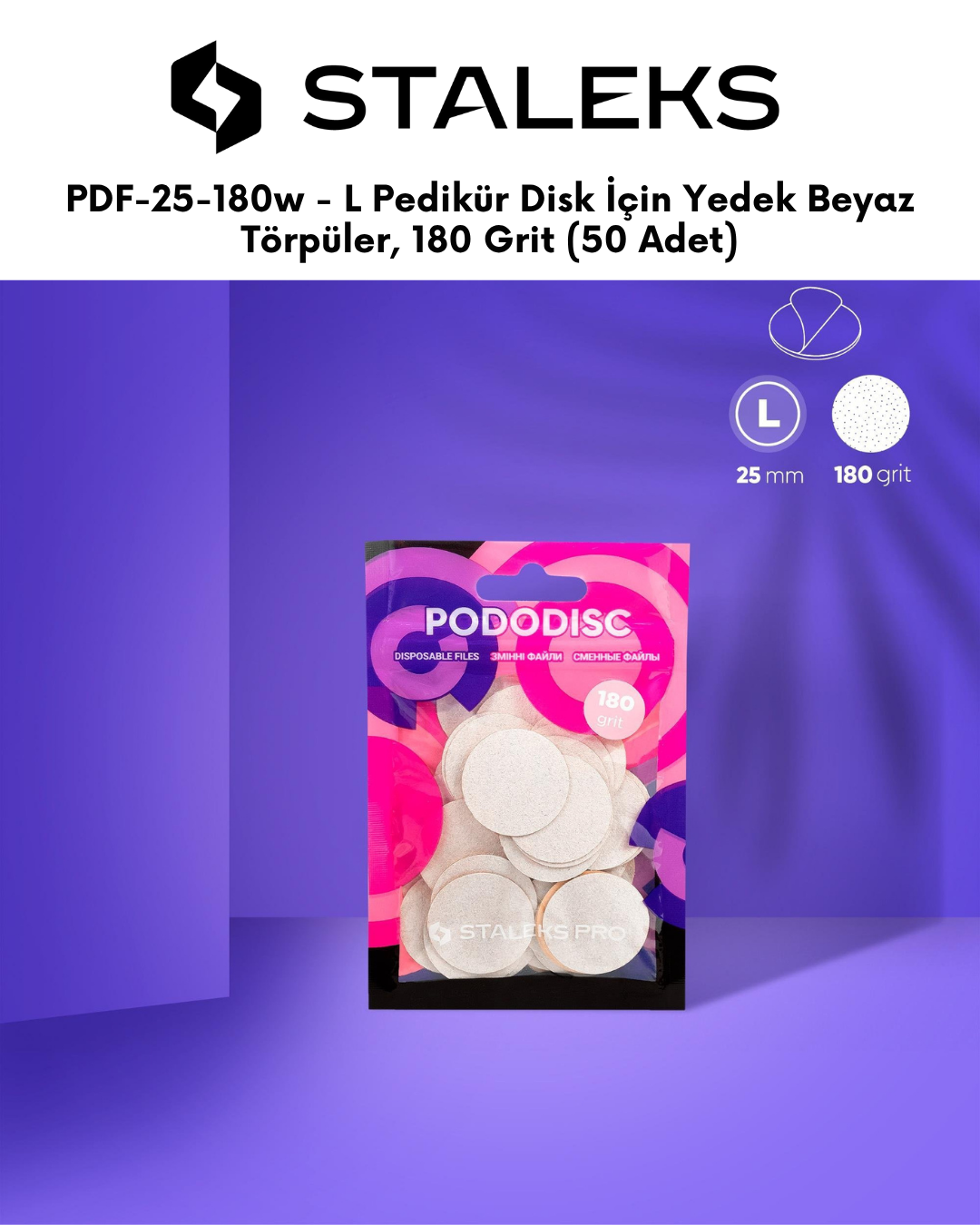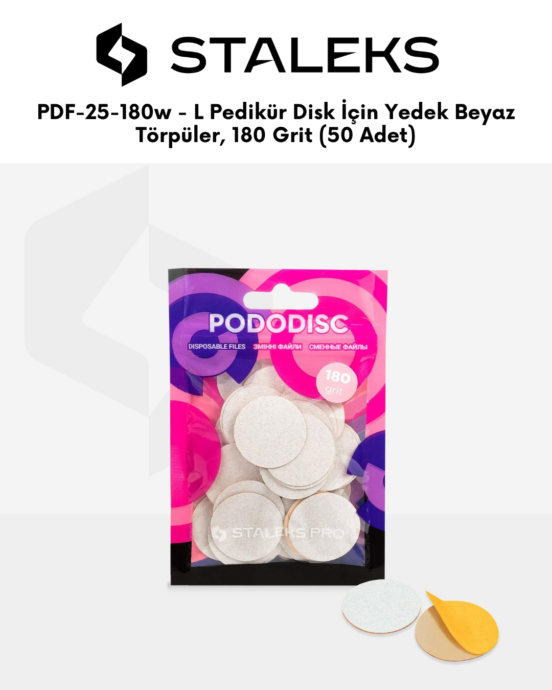 PODODISC STALEKS PRO L Pedikür Disk İçin Yedek Beyaz Törpüler, 180 Grit (50 Adet)
