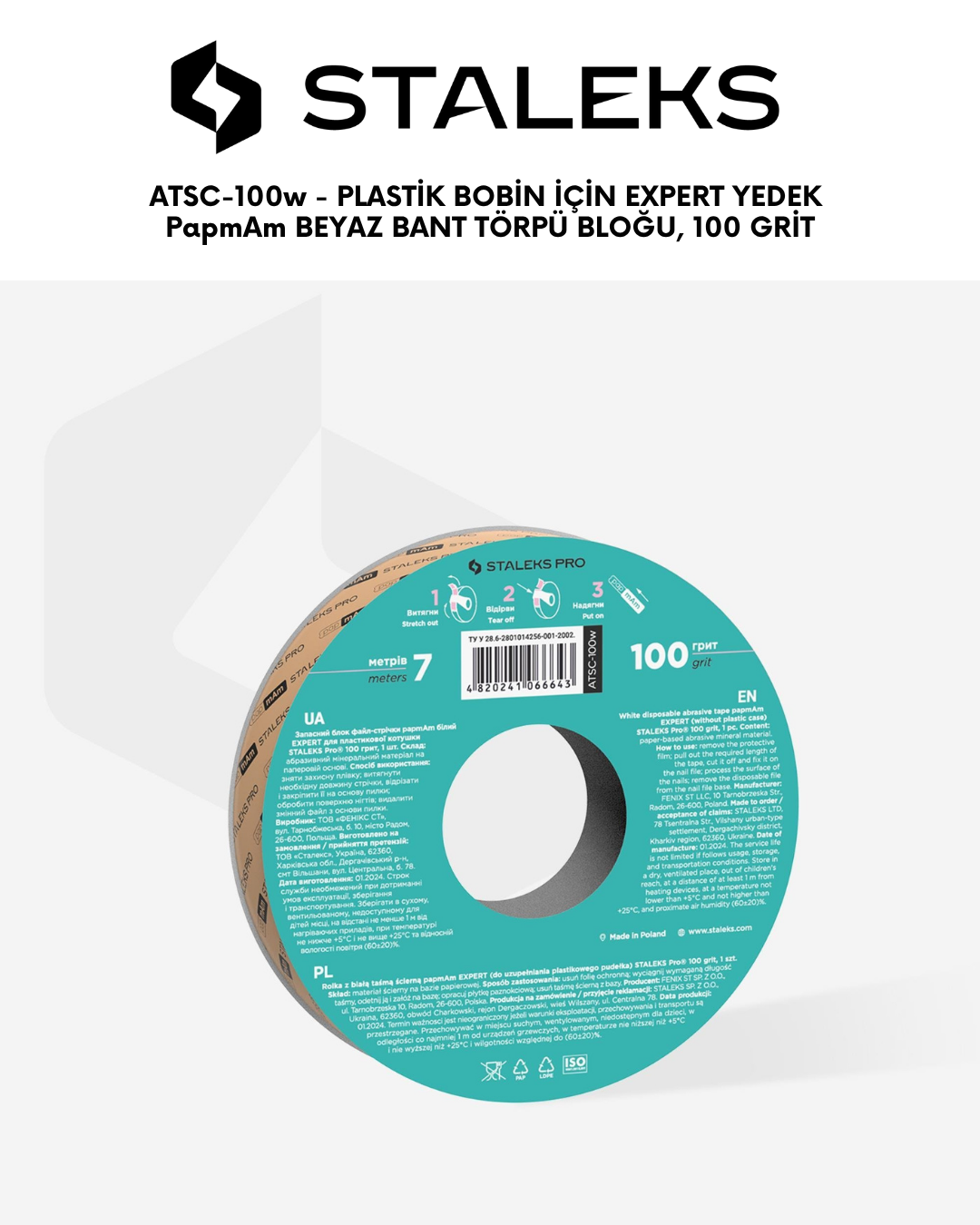 STALEKS PRO Plastik Bobin İçin EXPERT Yedek PapmAm Beyaz Bant Törpü Bloğu, 100 Grit