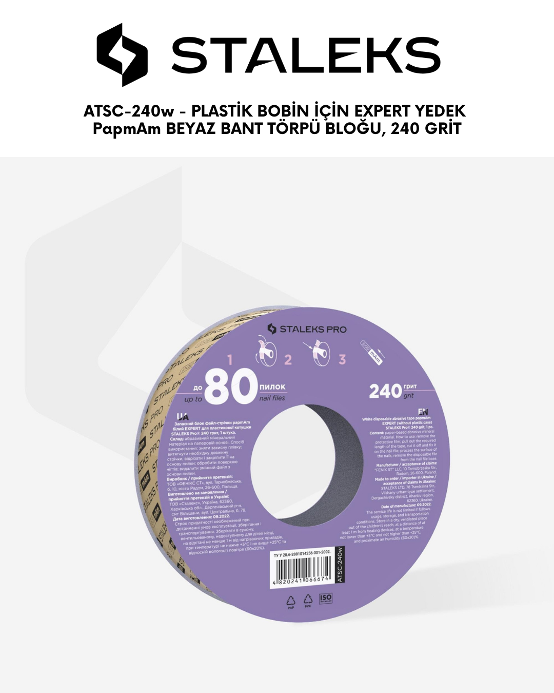 STALEKS PRO Plastik Bobin İçin EXPERT Yedek PapmAm Beyaz Bant Törpü Bloğu, 240 Grit
